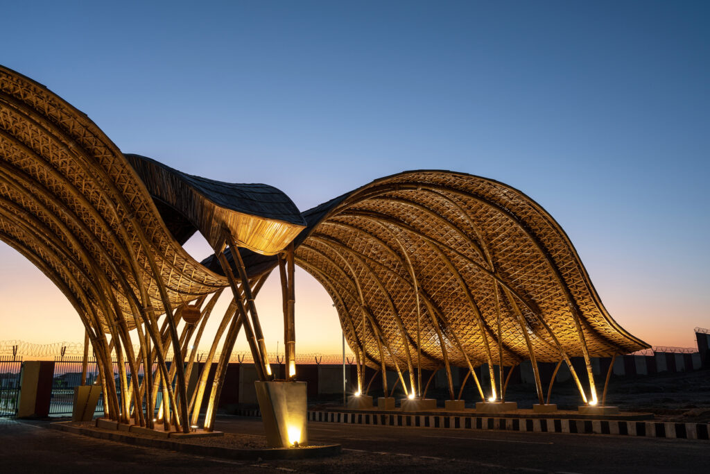 Located at the entry of Donyi Polo Airport, near the state capital of Itanagar, Arunachal Pradesh, this landmark structure was designed in the shape of the state bird, the Great Hornbill. Constructed entirely of locally sourced bamboo and cane, this project was declared by the media as “the biggest public structure in India made of naturally available materials”.
