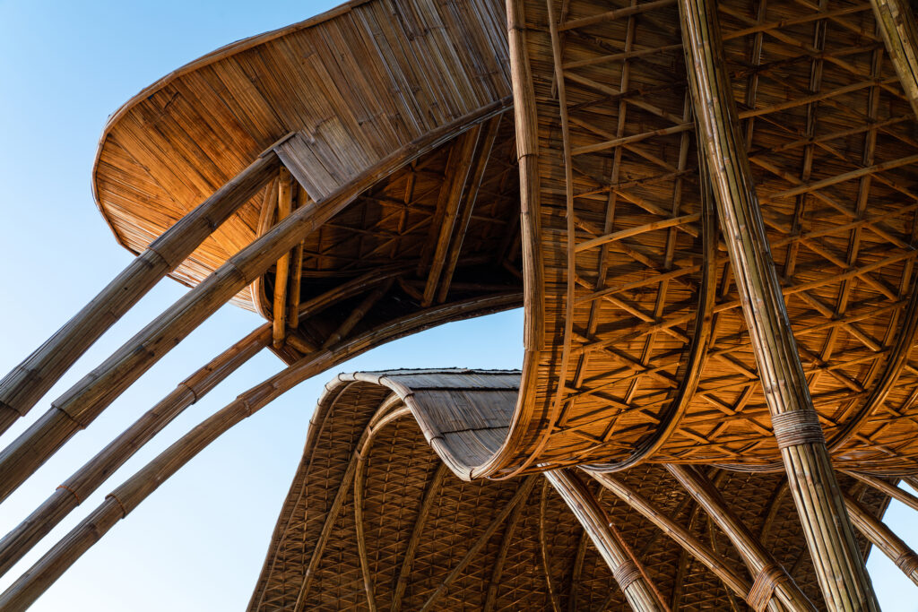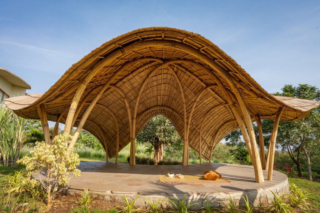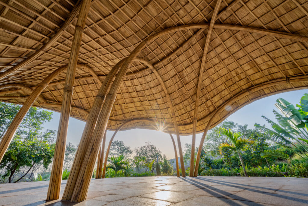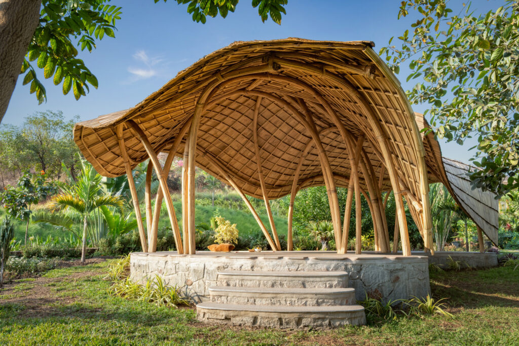 An ornate structure commissioned by a nature-loving family on a beautiful farmland in Tamil Nadu, just two hours outside of Bengaluru. Built using multiple arches and ring beams, the unique geometry of the gazebo stands as a testament to the beauty and versatility of bamboo, and what it can be used to create.