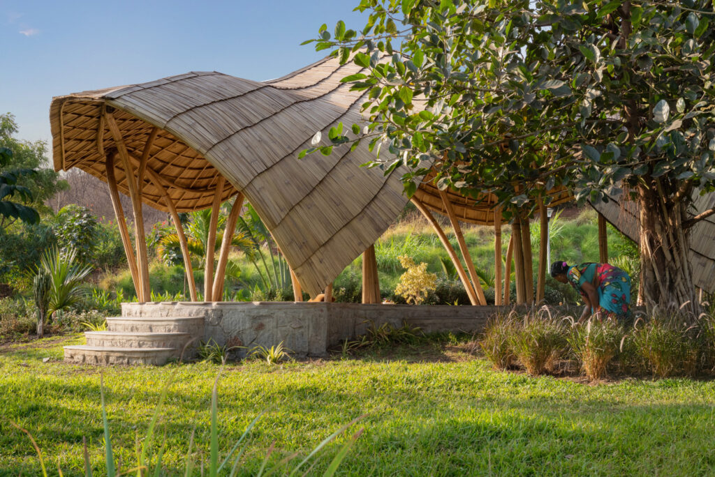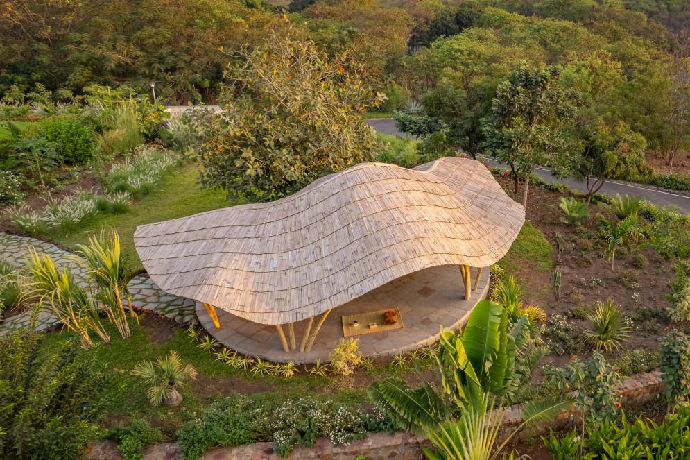A living structure built to encircle a beautiful young banyan tree, located near the world heritage site of Hampi. As these trees are known to grow for a thousand years, and can cover several acres as they do, the bamboo pavilion was designed accommodate and evolve with the tree as it grows.